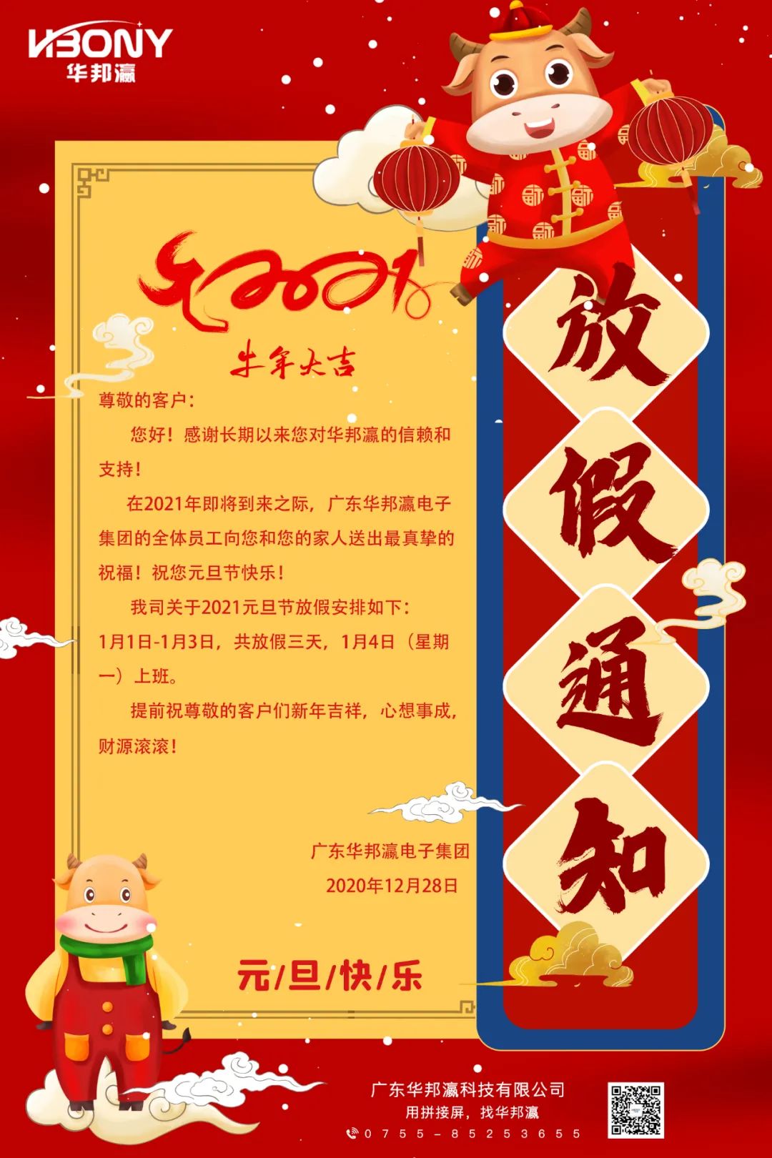 往事清零,萬事如意,萬物更新,舊疾當(dāng)愈;華邦瀛愿你在即將到來的2021年心想事成,大吉大利!