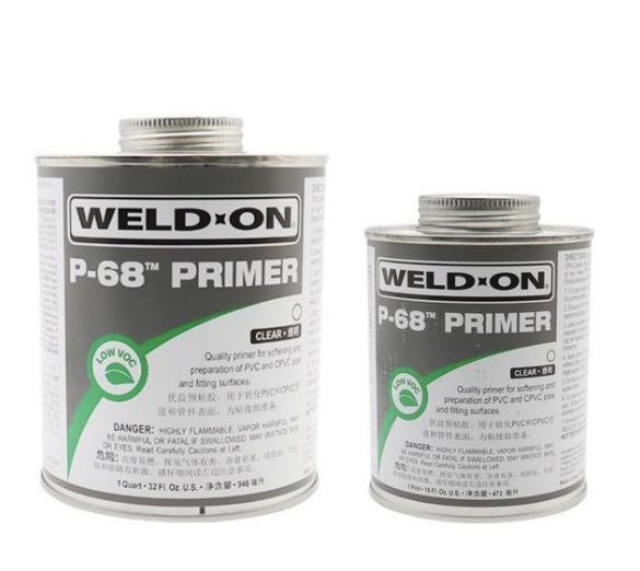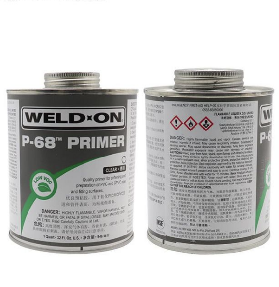 WELD-ON IPSP-68清潔劑 UPVC和CPVC清潔劑(圖5) P-68 IPSP-68清潔劑 UPVC和CPVC清潔劑(圖6)是一種低VOC揮發(fā),無(wú)固含量,快速作用的預(yù)粘膠, P-68預(yù)粘膠能夠快速軟化和溶解PVC和CPVC和ABS管道和管件的接口表面。使用規(guī)格分為透明和紫色,紫色便于在接口表面區(qū)別。